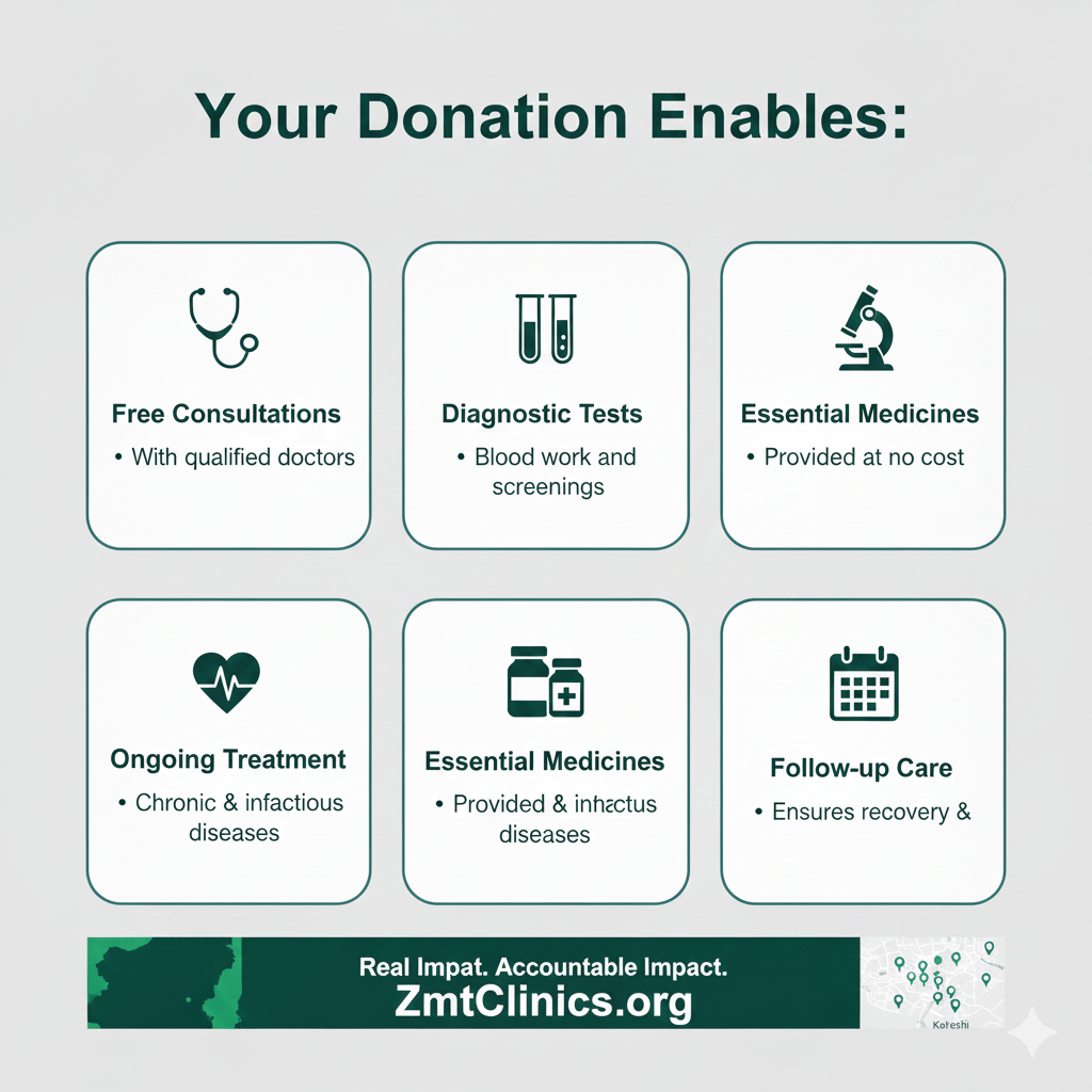 General healthcare donations support clinic operations, including doctor consultations, nursing care, medicines, utilities, and patient flow management. These funds keep clinics open and accessible every day.