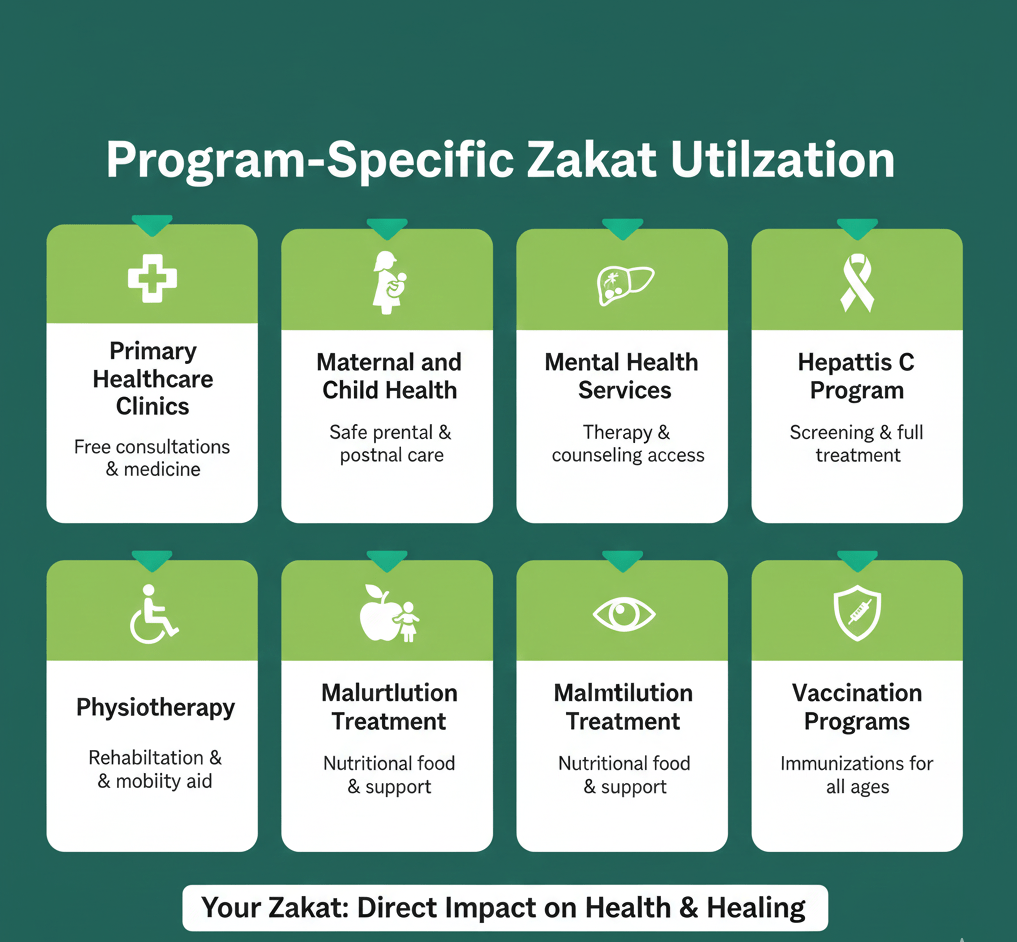 Zakat is never used for marketing, expansion, construction, or unrelated activities. Its sole purpose remains patient care for those who qualify.